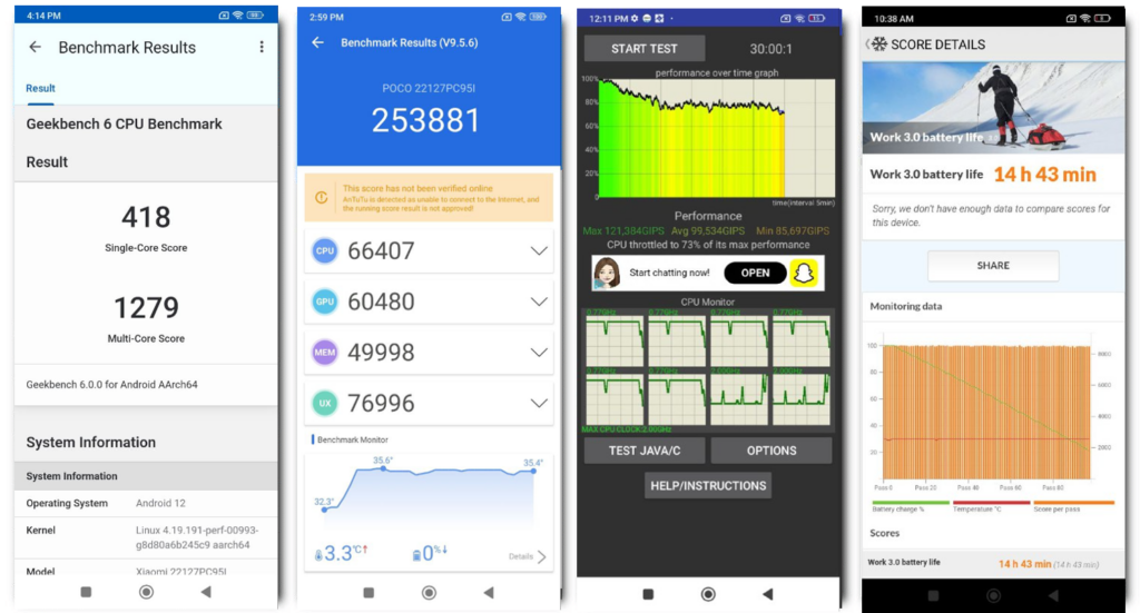- Under the hood, the POCO C55 rocks a MediaTek Helio G85 SoC paired with 4GB / 6GB RAM and 64GB / 128GB user-expandable storage. The handset does not offer extraordinary performance but gets the job done. The phone launches apps in relatively quickly and runs games like Bubble Shooter and 2048 without hiccups. The handset also handled Subway Surfer pretty well. The device can also load graphically heavy games like Free Fire Max and Call of Duty, but the experience isn’t great. There were a lot of frame drops and stuttering during my testing. The multitasking on the device also remained decent, with few apps running in the background. In terms of benchmarks, the POCO C55 scored 2,53,881 points in AnTuTu, which is better than most budget smartphones. In Geekbench’s single-core and multi-core tests, the handset managed 418 and 1,279 points, respectively. That said, the phone’s performance throttles to 73 percent running 20 threads for 30 minutes in the CPU Throttle test.