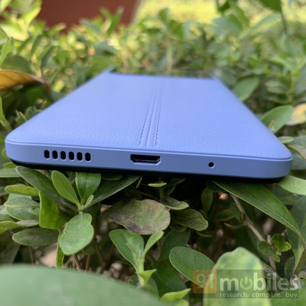 - Moving on, the POCO C55 ships with keys for volume and power on the right spine that feel a bit muted. The feedback could have been better. The 3.5mm headphone jack is on the top edge, while the bottom edge houses a speaker grille and a micro-USB port, for charging and data transfer. The SIM tray, which has a dedicated slot for a microSD card, is on the left side of the device. The handset also comes with a rear-mounted fingerprint reader. It is placed in the glossy camera cutout, which is so high up in the back panel that could be slightly tricky to access with your finger. As for its working, the fingerprint reader was consistent throughout my testing, but it takes a little more than a fraction of a second to unlock the device.