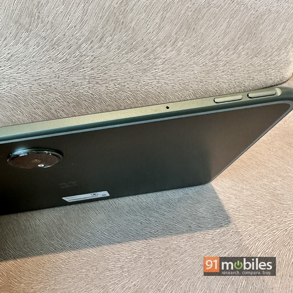 The top edge of the tablet (when held in portrait mode) is flat and holds two separate volume keys on the left, and a strip where the optional stylus attaches magnetically. The power key is on the top left, while the USB Type-C port on the right. Both sides have a pair of slits for the speakers, while the bottom has three pogo pin connectors for attaching the optional keyboard cover. The rear holds the large camera lens that hides a 13MP sensor. The front snapper utilises an 8MP sensor, and is positioned in the middle above the display as usual.