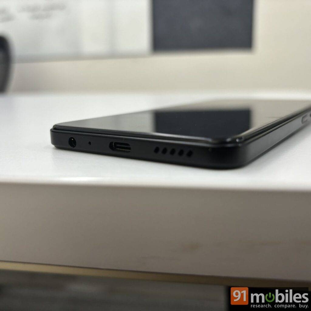 As for I/O, the Lava Blaze 2 5G sports a USB Type-C port for charging and data transfer, a 3.5mm headphone jack, and a single speaker – all on the bottom edge. The right spine of the phone is equipped with a fingerprint scanner that works quite accurately and seamlessly unlocks the device.