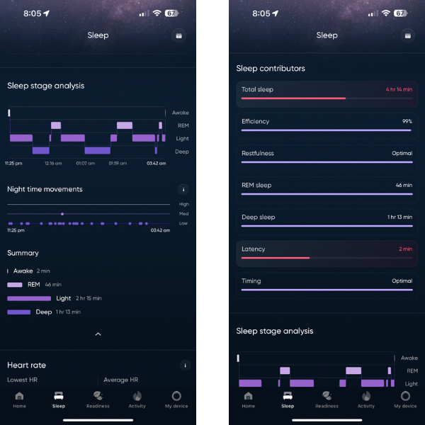 In terms of physical data and health metrics, which is its core proposition, I think the Luna Ring captures accurate numbers, matching my own testing and corroborated using other fitness trackers and smartwatches as well. Once synced, the Luna Ring app presents a detailed analysis of your physical activity, and displays data on sleep patterns, activity, heart rate variability etc, for the day. Do note that measurements like SpO2 and skin temperature etc cannot be taken on demand — instead, the data is accumulated over the day and as you sleep.